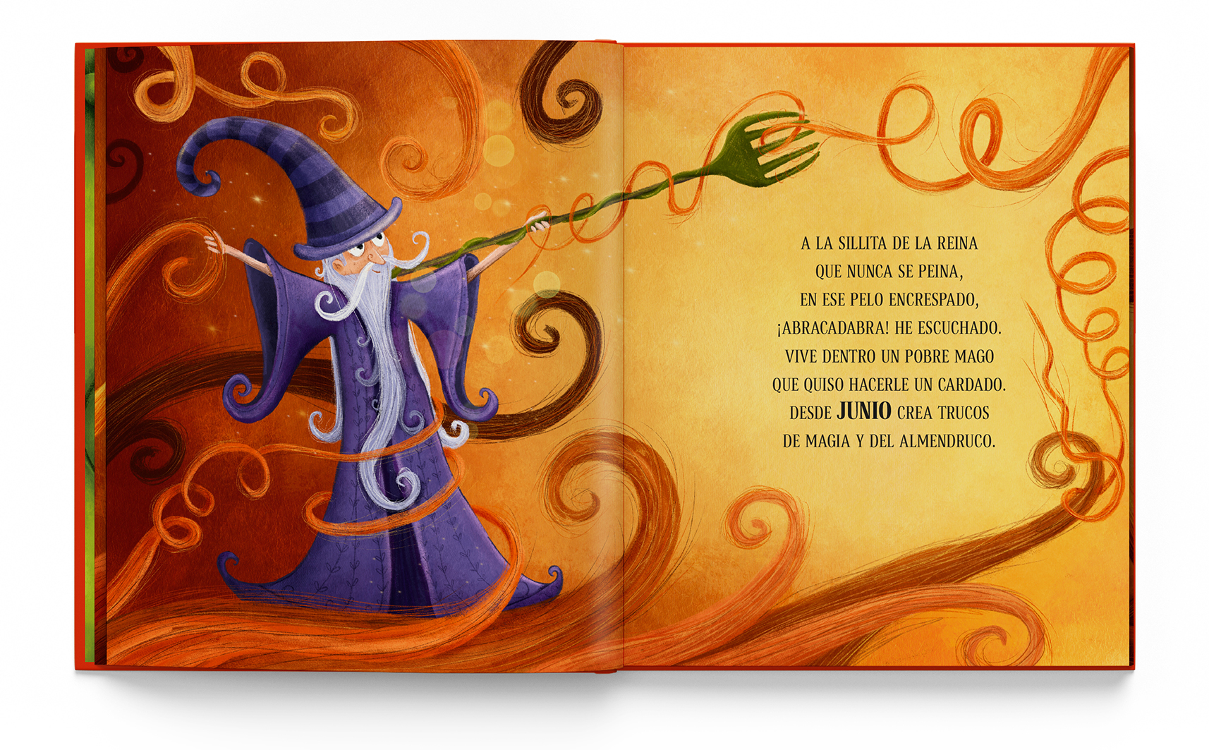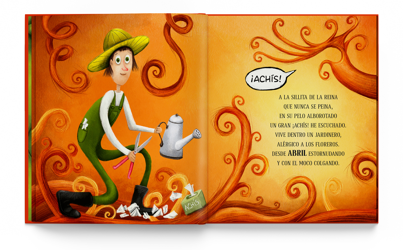 A la cadira de la reina que mai es pentina. Des de gener fins a desembre no ha conegut una pinta. Cada mes, en el seu pèl embullat, trobaràs algun ésser absurd. Si els vols conèixer, no miris per a un altre costat.